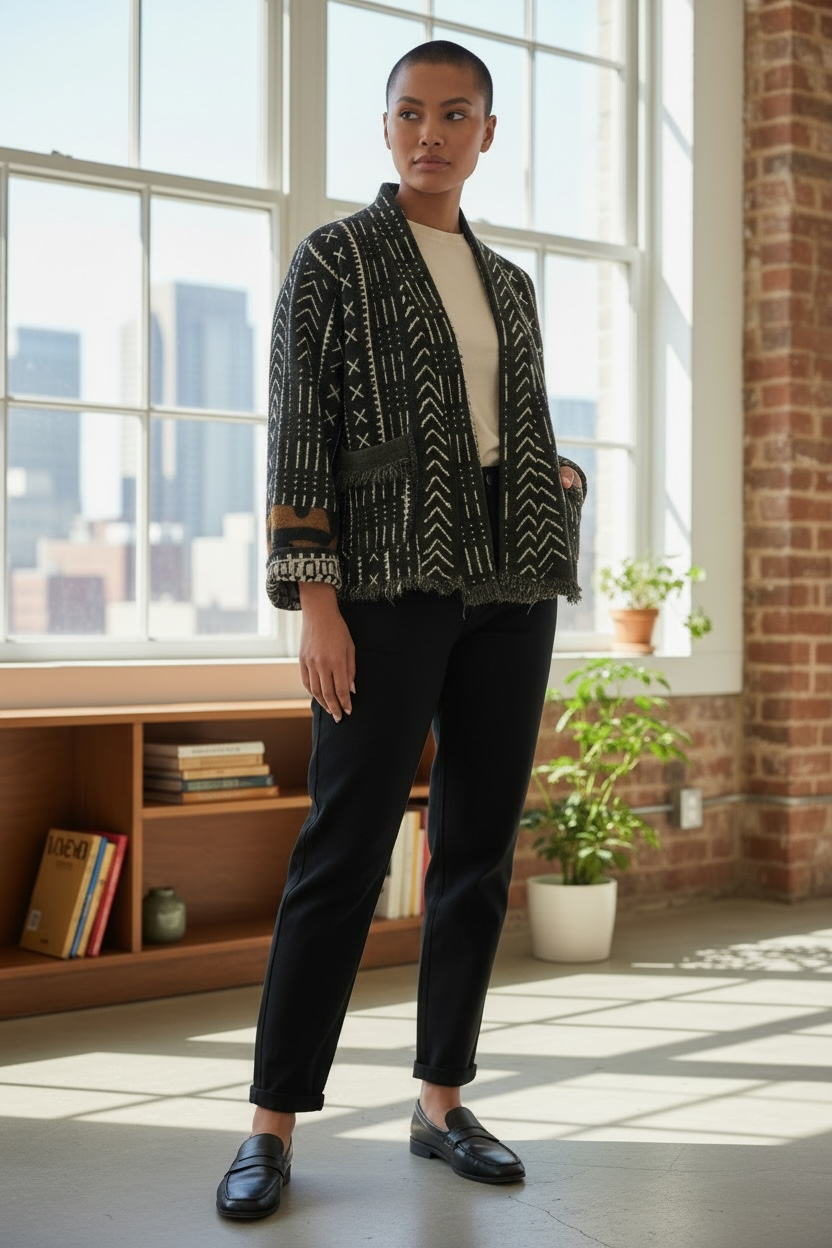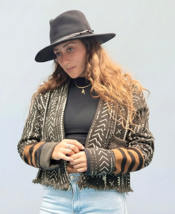 ONE OF A KIND oversized, Prewashed Fabric is handwoven in Mali, West Africa made into gorgeous relaxed fit cropped jackets. machine wash cold gentle hang dry