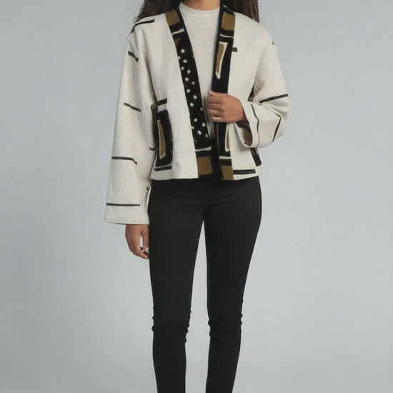 Prewashed and repaired Fabric is mudcloth from Mali, West Africa made into gorgeous relaxed fit cropped jackets.